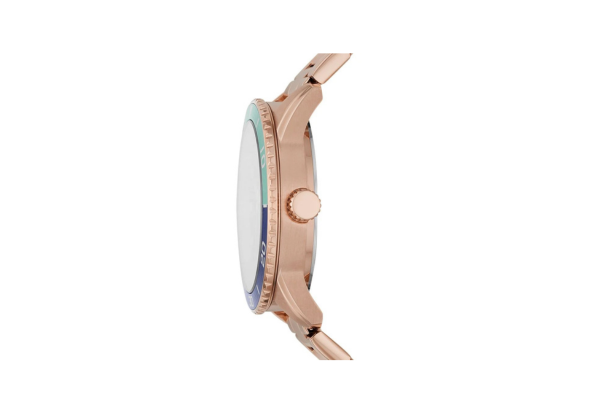 Material da pulseira: Aço inoxidável com tom rosé combinando com a caixa.