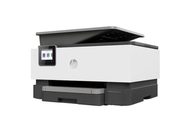Modelo: HP OfficeJet Pro 9013 All-in-One Multifuncional — Imprime, digitaliza, copia e envia fax. Usa tecnologia de jato de tinta térmico (HP Thermal Inkjet), ideal para escritórios domésticos e pequenos negócios com necessidade de impressão colorida eficiente.