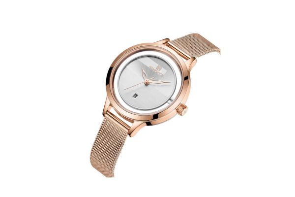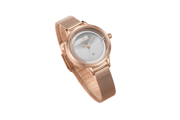| Material da pulseira | Stainless Steel Mesh — malha de aço inoxidável elegante. |